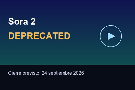 Según la guía oficial, el apagado está programado para el 24 de septiembre de 2026. El aviso menciona explícitamente a sora-2, sora-2-pro y varios snapshots versionados. Esto obliga a revisar integraciones, costes de migración y roadmap técnico para evitar interrupciones en servicios que todavía usen esos modelos.